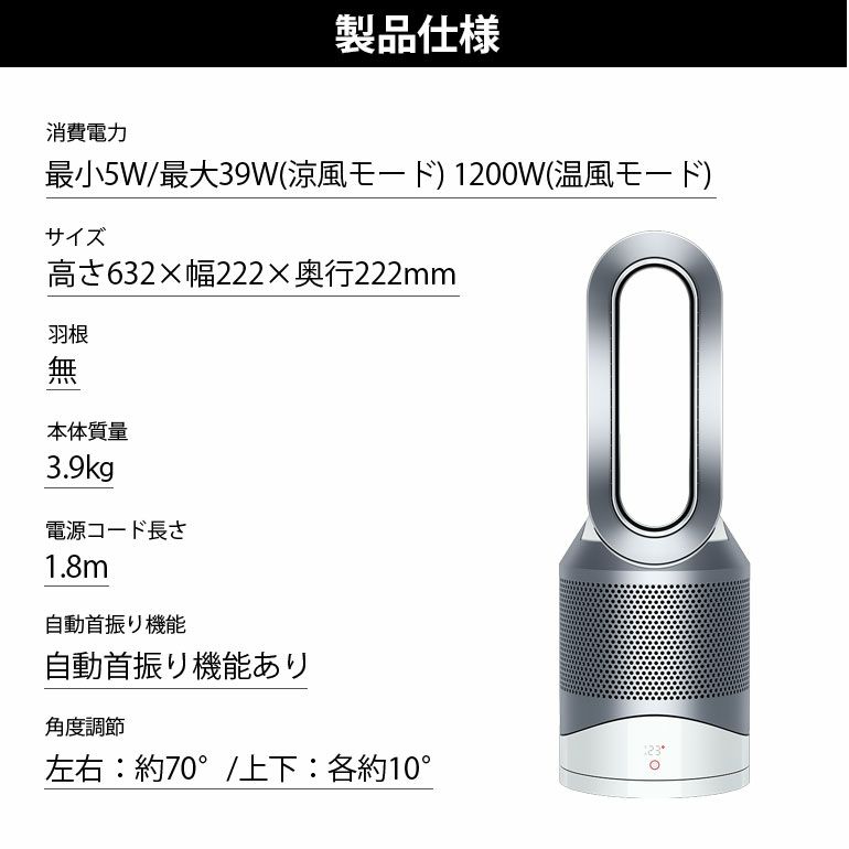 他の画像を見る 空気清浄機・扇風機・ファンヒーターの3つの性能を備えた優れもの HP00 IS N ダイソン Pure Hot + Cool 空気清浄機機能付きファンヒーター 代引不可 ¥ 38,800 税込 在庫切れ 詳細を見る お気に入りに登録する
