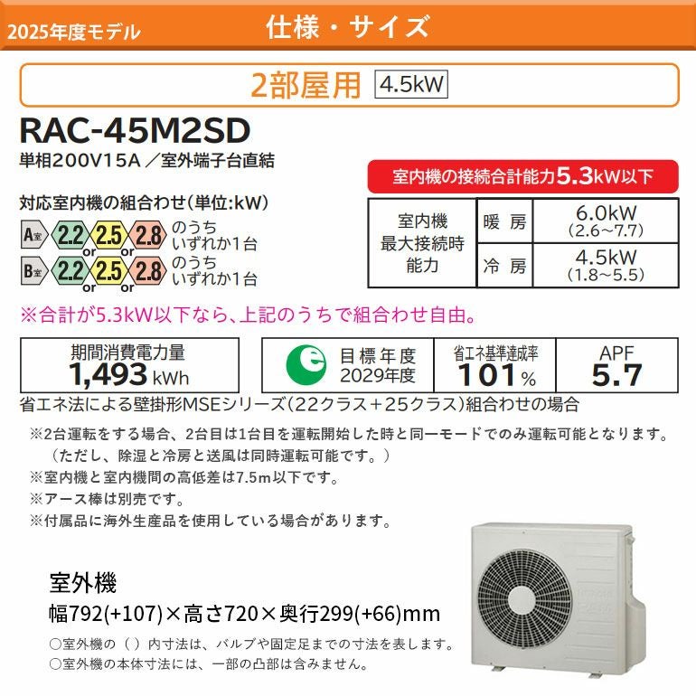他の画像を見る RAC-45M2SD 日立 システムマルチ室外機 2部屋用4.5KW 室外機のみ。2台以上の室内機と室外機を組み合わせるマルチタイプ。2部屋用。 室外機のみ 日立 白くまくん 代引不可 単相200V 2025年モデル 2部屋用 ¥ 114,850 税込 詳細を見る お気に入りに登録する