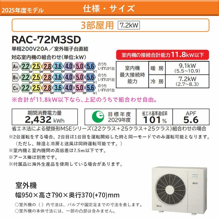 他の画像を見る RAC-72M3SD 日立 システムマルチ室外機 3部屋用7.2KW 室外機のみ。2台以上の室内機と室外機を組み合わせるマルチタイプ。3部屋用。 室外機のみ 日立 白くまくん 代引不可 単相200V 2025年モデル 3部屋用 ¥ 175,540 税込 詳細を見る お気に入りに登録する