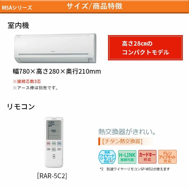 他の画像を見る RAM-SE28S 日立 マルチエアコン 壁掛タイプ MSEシリーズ 主に 10畳用 ステンレスをエアコン内部に採用。室内機のみ(リモコン付き)。2台以上の室内機と室外機を組み合わせるマルチ壁掛タイプ。主に10畳用。 室内機のみ 日立 白くまくん 代引不可 単相200V 2025年モデル ¥ 45,230 税込 詳細を見る お気に入りに登録する
