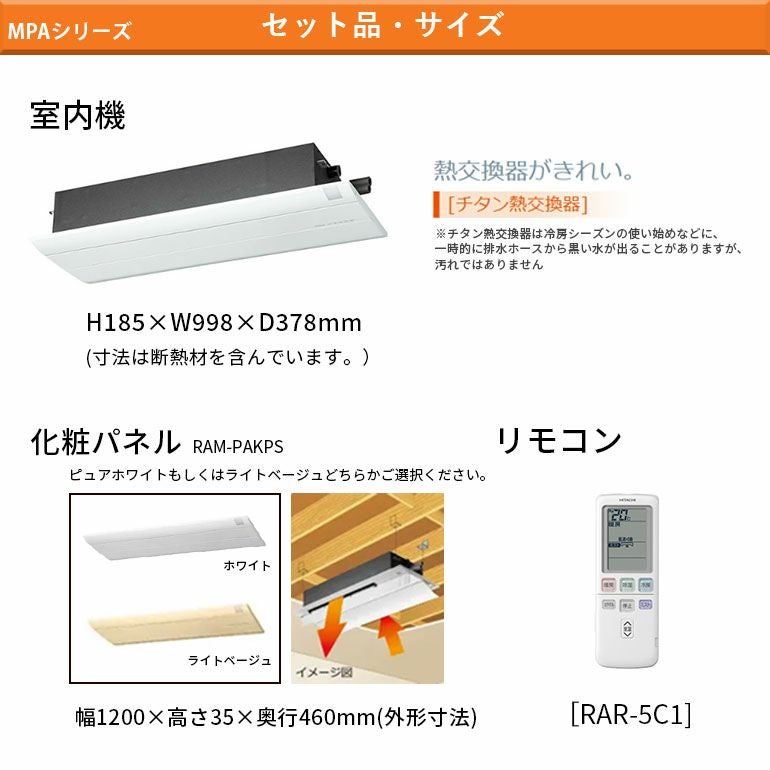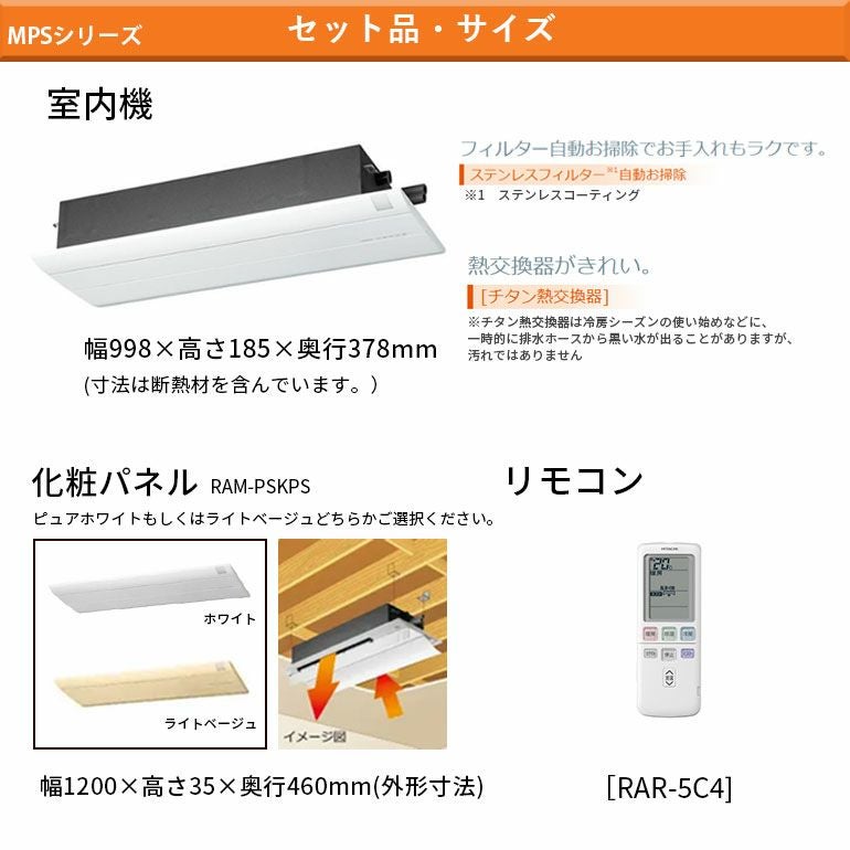 他の画像を見る RAM-PS28S 日立 マルチエアコン 一方向天井カセットタイプ MPSシリーズ 10畳用 日立 RAM-PS28S ステンレスフィルター自動お掃除を採用した天井カセットタイプマルチエアコン。主に10畳用 室内機のみ 日立 白くまくん 代引不可 単相200V 2025年モデル ¥ 94,980 税込 詳細を見る お気に入りに登録する