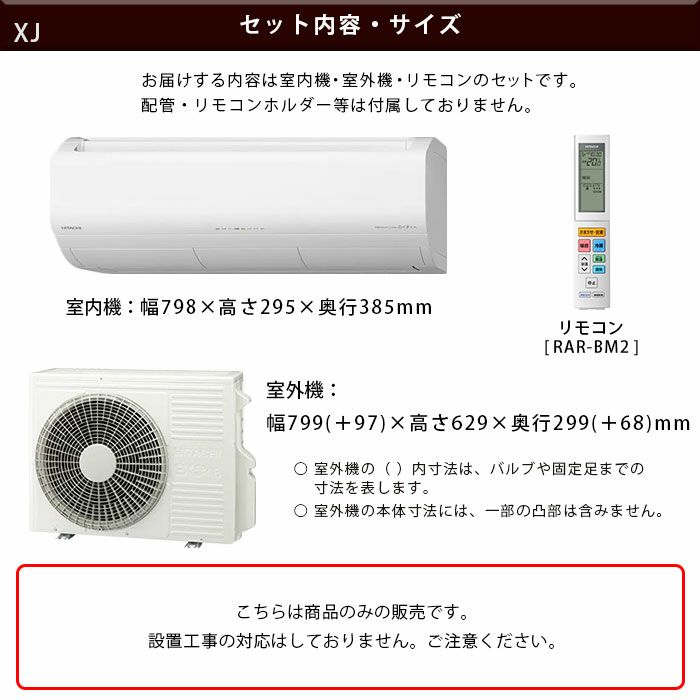 他の画像を見る エリア限定●標準工事費込み●[LAB制御][凍結洗浄 除菌ヒートプラス][ファンお掃除ロボ][Premiumプラズマ空清][凍結脱臭クリーナー]搭載プレミアムモデル。主に12畳用 【標準工事費込み】RAS-XJ3626S-W 日立 ルームエアコン 白くまくん XJシリーズ 主に12畳用 日立 白くまくん 標準工事費込み 代引不可 単相100V 日本製 2026年モデル ¥ 215,910 税込 詳細を見る お気に入りに登録する