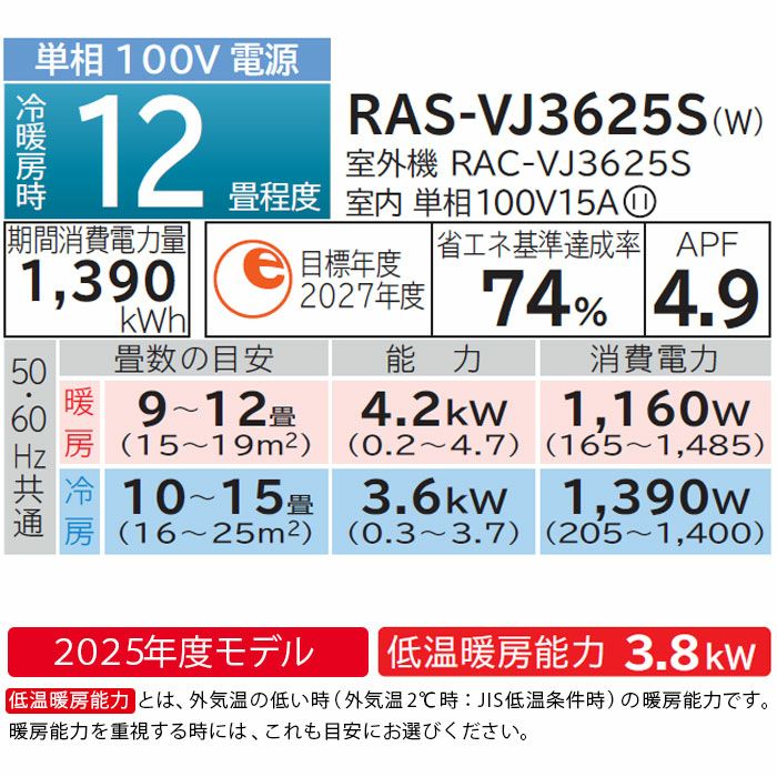 他の画像を見る 標準工事費込。高精度赤外線センサームーブアイmirA.I.+やバイタルセンサーエモコアイ搭載。主に12畳用。 【標準工事費込み】MSZ-ZXV3626-W 三菱電機 Zシリーズ エアコン 主に12畳用 三菱 霧ヶ峰 標準工事費込み 代引不可 単相100V 日本製 2026年モデル ¥ 222,750 税込 詳細を見る お気に入りに登録する