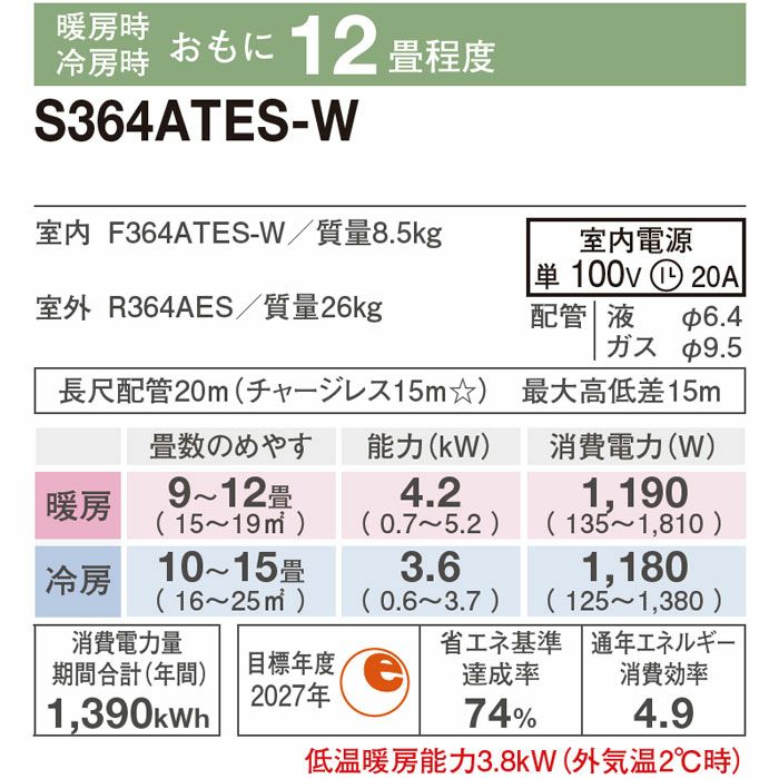 他の画像を見る S36ZTES-W ダイキンW●エリア限定●標準工事費用込みエアコン。工事保証3年付。 【長期保管商品】【標準工事費込み】S36ZTES-W ダイキン ルームエアコン Eシリーズ 主に12畳用 ダイキン Eシリーズ 標準工事費込み 代引不可 単相100V 2022年モデル ¥ 96,100 税込 在庫切れ 詳細を見る お気に入りに登録する