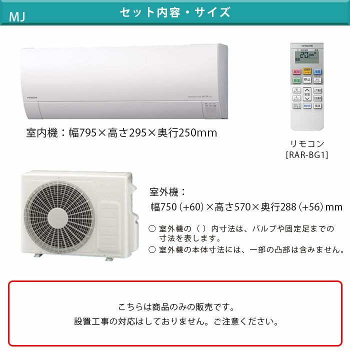 他の画像を見る 本体奥行き25㎝の薄型で寝室や子ども部屋などにもすっきり設置できる薄型モデル RAS-MJ3625S-W 日立 MJシリーズ 白くまくん ルームエアコン 2025年モデル 主に12畳用 日立 白くまくん 代引不可 単相100V フィルター自動洗浄 2025年モデル ¥ 101,390 税込 詳細を見る お気に入りに登録する