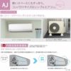 狭いスペースでもスッキリと収まるAJシリーズ2025年モデル(おもに18畳用)です。室外機も小幅におさえられているため、ベランダに置いても邪魔になりません。新機能の「内部送風乾燥運転」や「シーズン前自動点検」、「ソフト除湿」機能などを搭載しています。