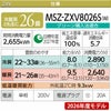 MSZ-ZXV8026S-W 三菱電機 Zシリーズ エアコン 主に26畳用