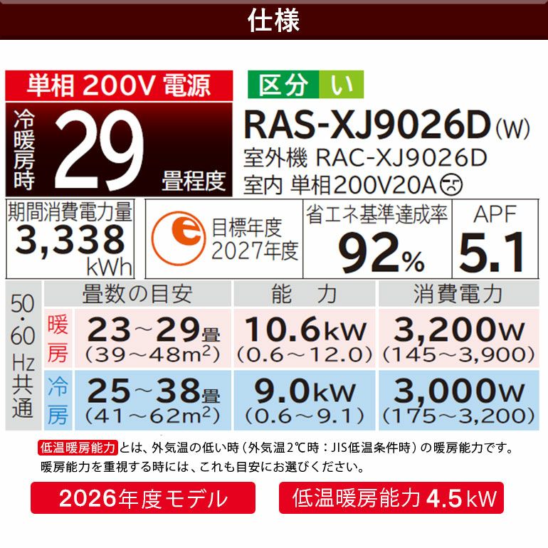 他の画像を見る エリア限定●標準工事費込み●[LAB制御][凍結洗浄 除菌ヒートプラス][ファンお掃除ロボ][Premiumプラズマ空清][凍結脱臭クリーナー]搭載プレミアムモデル。主に26畳用 【標準工事費込み】RAS-XJ9026D-W 日立 ルームエアコン 白くまくん XJシリーズ 主に29畳用 日立 白くまくん 標準工事費込み 代引不可 単相200V 日本製 2026年モデル ¥ 330,900 税込 詳細を見る お気に入りに登録する