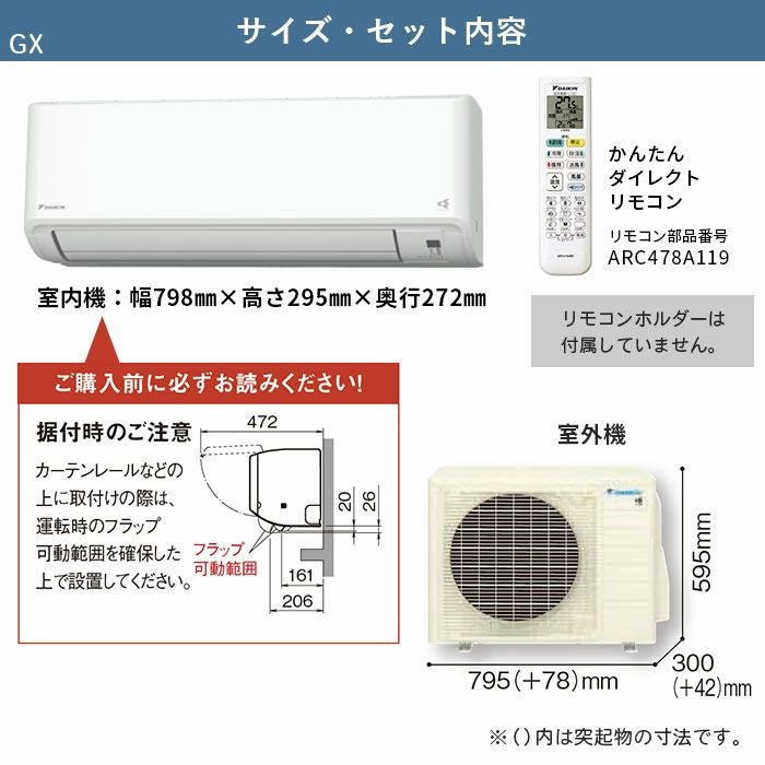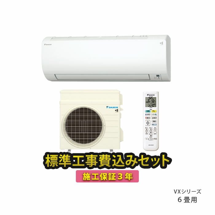 当店では「標準取付工事費込み」でのエアコンのご注文を承っております。エアコン本体に標準工事がセットになっているため、工事業者を探す手間がなく簡単です。工事には施工保証が3年間付いており、万が一の時にも安心。オプションで取外しや回収のサービスも行っております。