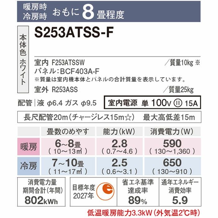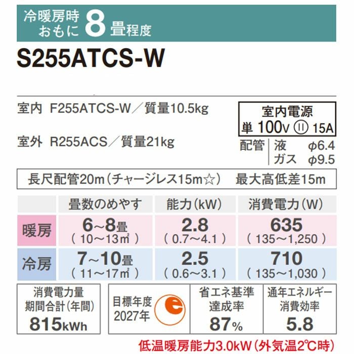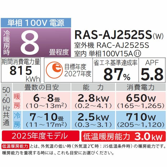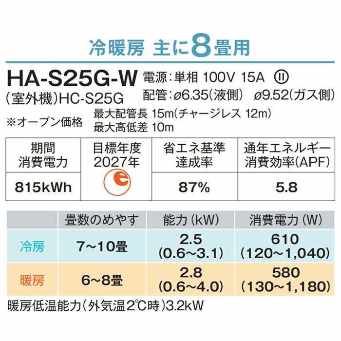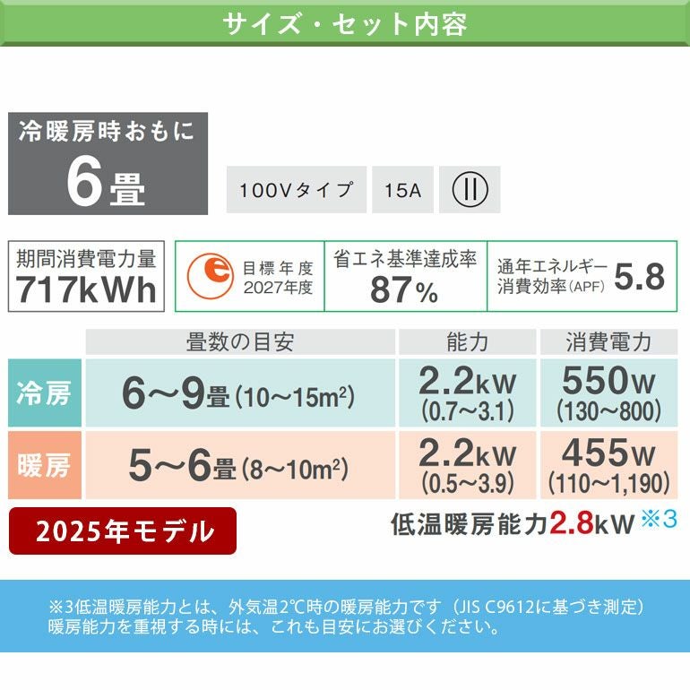| 主な畳数 | 日立 | 東芝 | 三菱 | ダイキン | ハイセンス | パナソニック | アイリスオーヤマ |