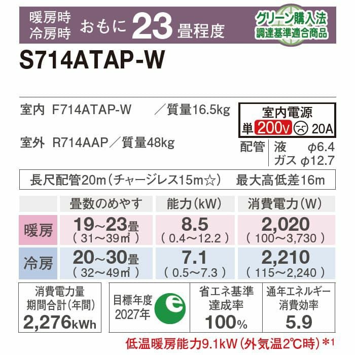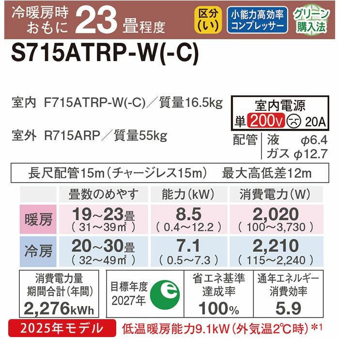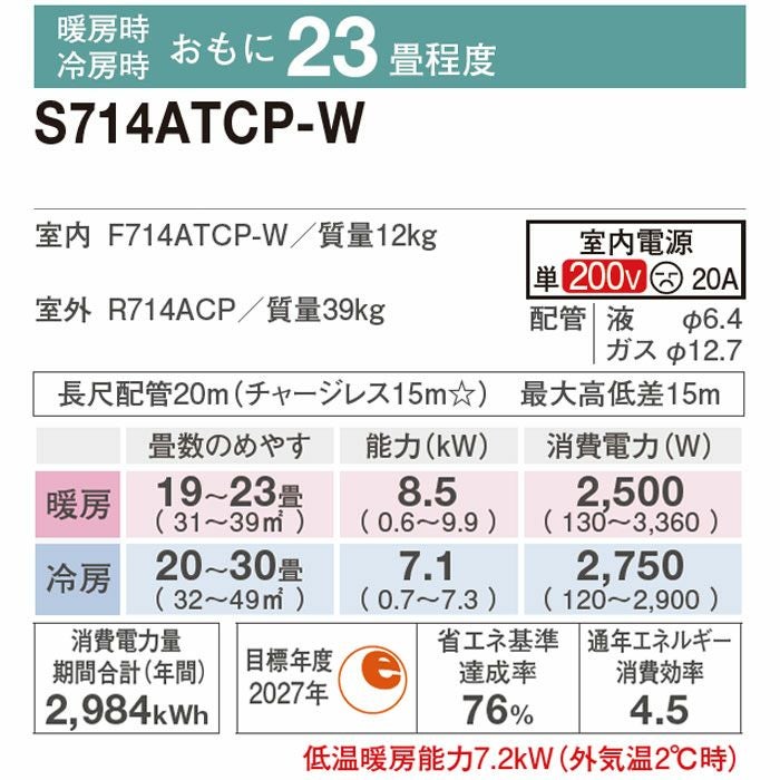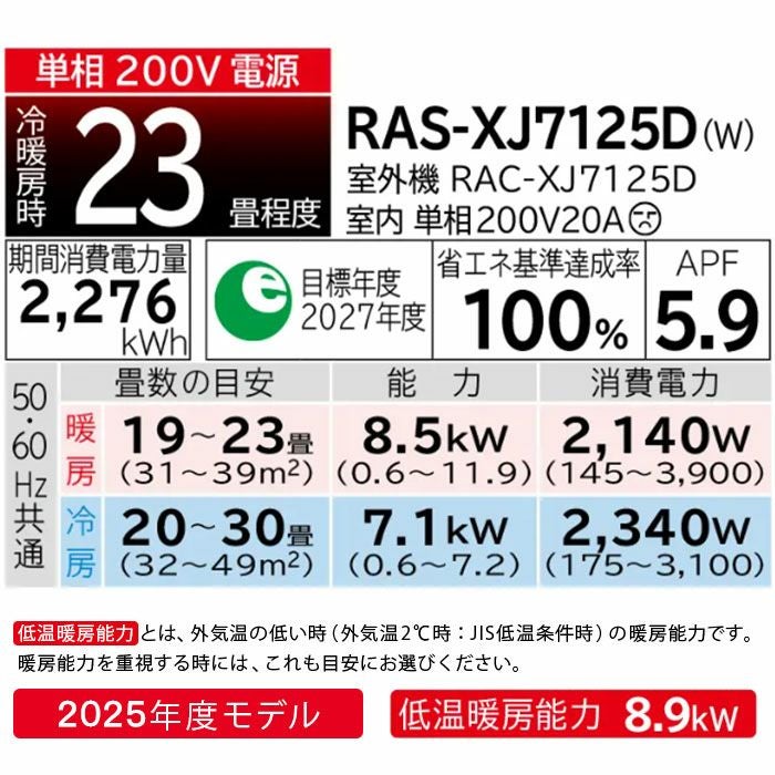 【標準工事費込み】RAS-XJ7125D-W 日立 ルームエアコン 白くまくん XJシリーズ 2025年モデル 主に23畳用