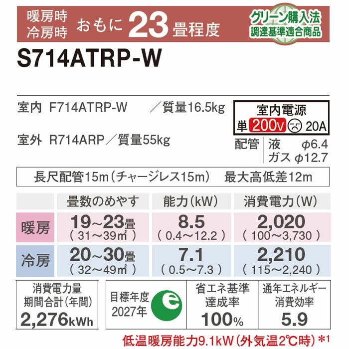エリア限定●標準工事費用込みエアコン●「Premium プラズマ空清」「凍結脱臭クリーナー」「凍結洗浄 除菌ヒートプラス」「ファンお掃除ロボ」「カビバスター」「ステンレス・クリーン システム」搭載プレミアムモデル。主に23畳用。