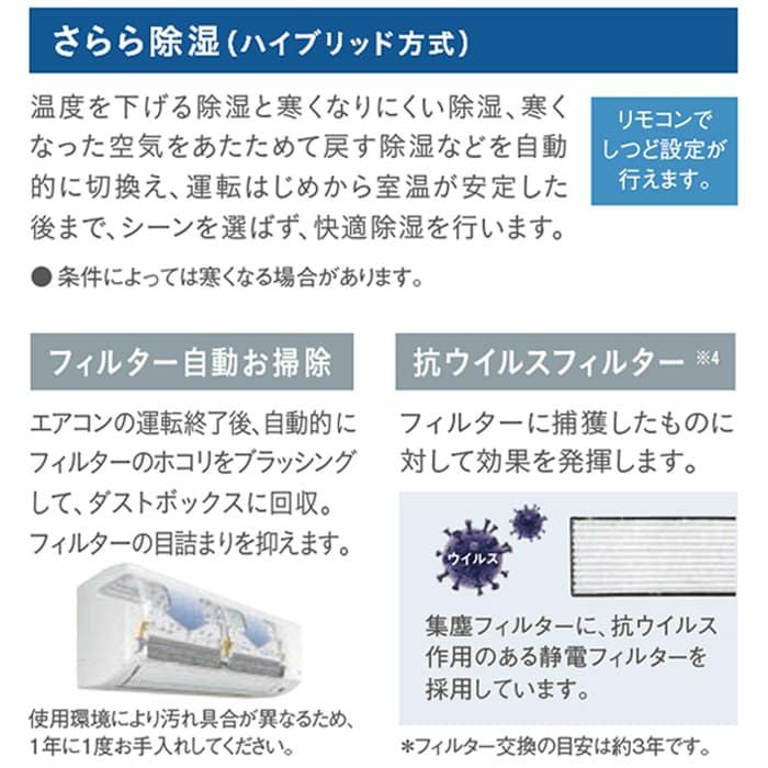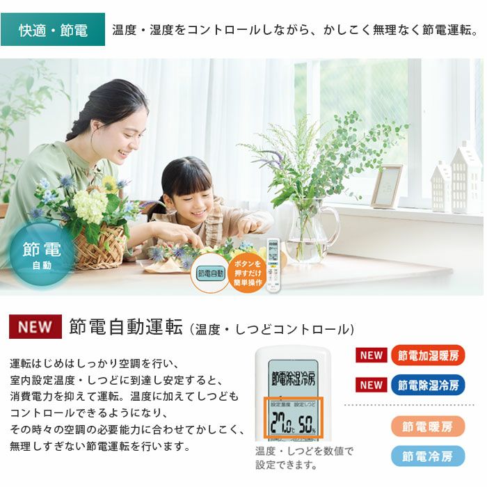 さらに、AI機能、自動フィルターお掃除機能、人感センサーなどの機能を活用すれば、快適性を保ちながら省エネ効果を高めることができます。