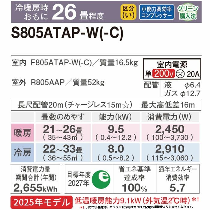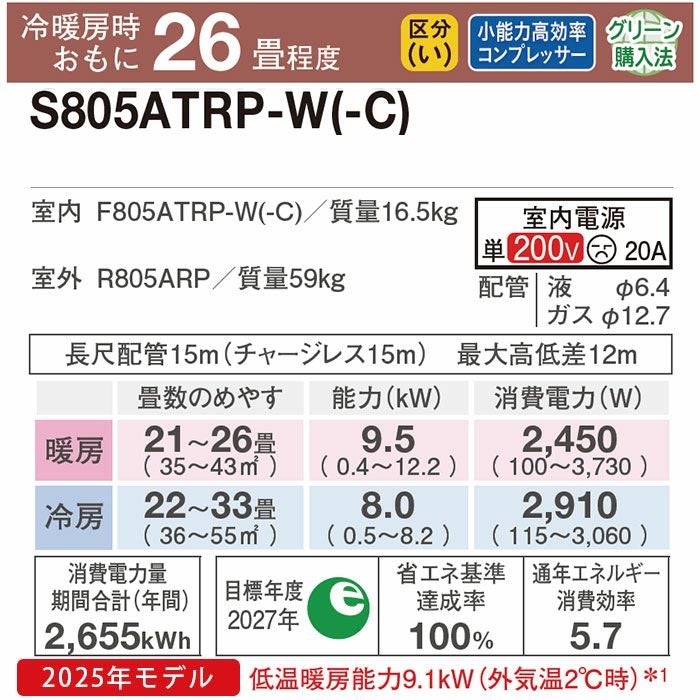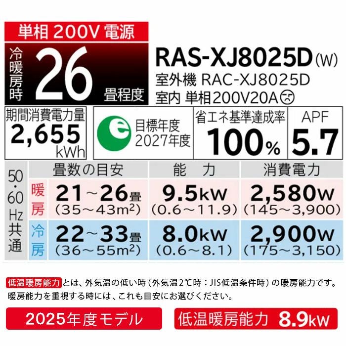 【標準工事費込み】 RAS-XJ8025D-W 日立 ルームエアコン 白くまくん XJシリーズ 2025年モデル 主に26畳用