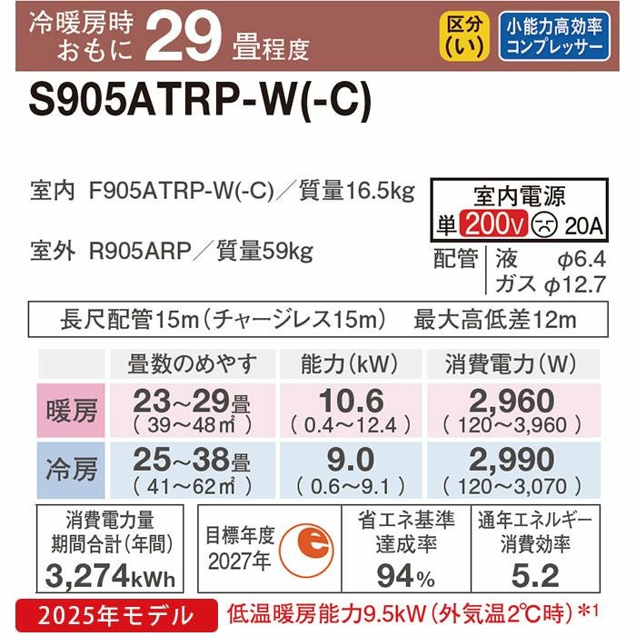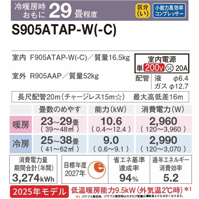 【標準工事費込み】 RAS-XJ9025D-W 日立 ルームエアコン 白くまくん XJシリーズ 2025年モデル 主に29畳用