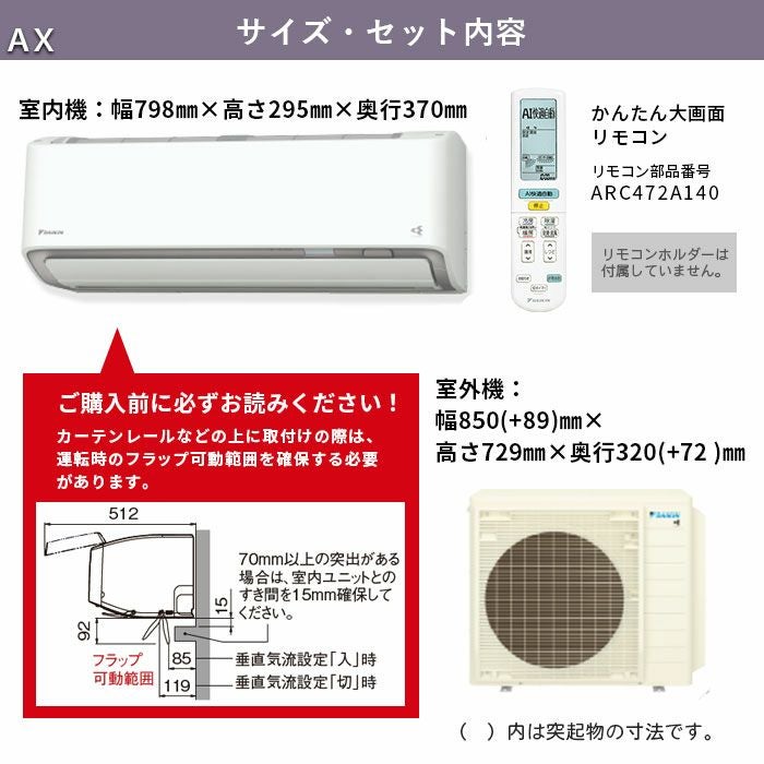当店では「標準取付工事費込み」でのエアコンのご注文を承っております。エアコン本体に標準工事がセットになっているため、工事業者を探す手間がなく簡単です。工事には施工保証が3年間付いており、万が一の時にも安心。オプションで取外しや回収のサービスも行っております。