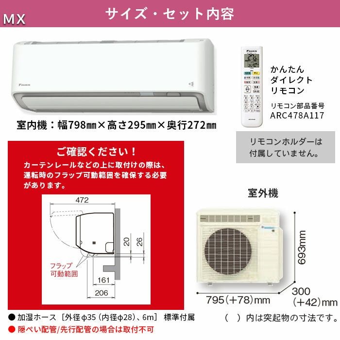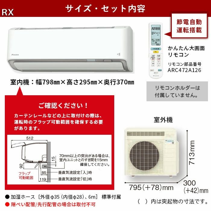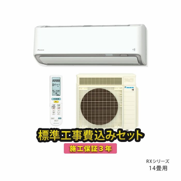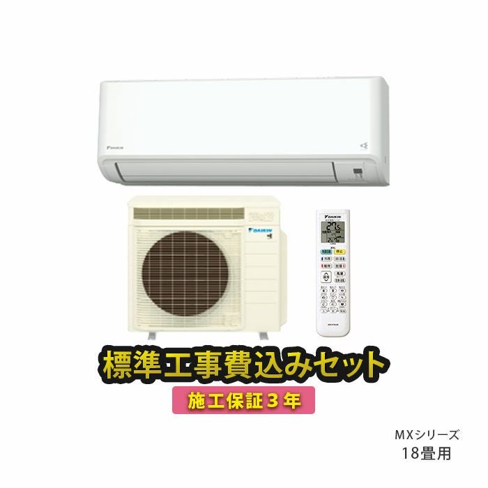 当店では「標準取付工事費込み」でのエアコンのご注文を承っております。エアコン本体に標準工事がセットになっているため、工事業者を探す手間がなく簡単です。工事には施工保証が3年間付いており、万が一の時にも安心。オプションで取外しや回収のサービスも行っております。