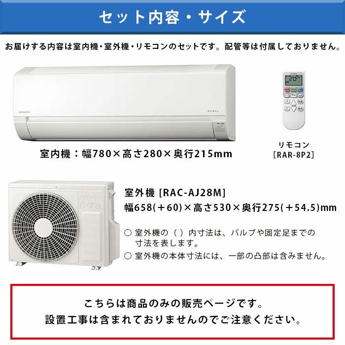 他の画像を見る 【長期保管商品】RAS-AJ28M-W 日立 ルームエアコン 白くまくんくん AJシリーズ 主に10畳用 日立 白くまくん 代引不可 単相100V 2022年モデル ¥ 53,350 税込 在庫切れ 詳細を見る お気に入りに登録する
