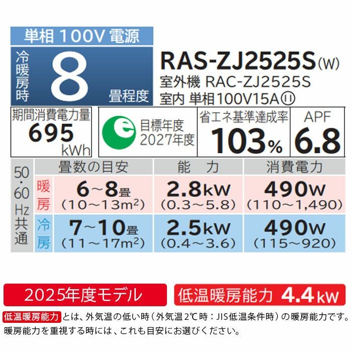 他の画像を見る RAS-ZJ2525S-W 日立 ルームエアコン 白くまくん ZJシリーズ 主に8畳用 2025年モデル 凍結洗浄・ファンお掃除ロボ・カビバスター搭載のハイグレードモデル。2025年モデルから内部送風乾燥運転搭載。 日立 白くまくん 代引不可 単相100V 日本製 2025年モデル ¥ 135,670 税込 詳細を見る お気に入りに登録する