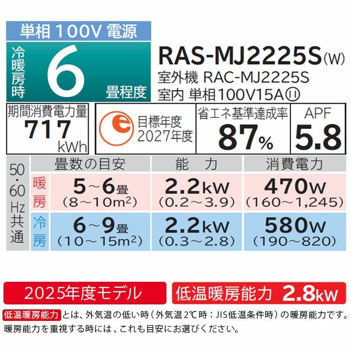 他の画像を見る 【標準工事費込み】RAS-MJ2225S-W MJシリーズ 白くまくん 日立 エアコン 2025年モデル 主に6畳用 標準工事費込。室内機・室外機[凍結洗浄]に加え、[カビバスター]を搭載 日立 白くまくん 標準工事費込み 代引不可 単相100V フィルター自動洗浄 2025年モデル ¥ 91,760 税込 詳細を見る お気に入りに登録する