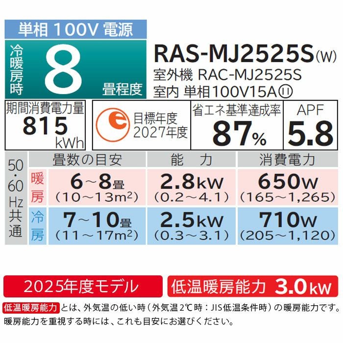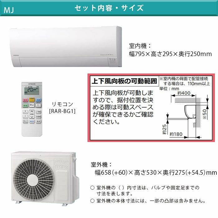 他の画像を見る RAS-MJ2525S-W 日立 MJシリーズ 白くまくん ルームエアコン 2025年モデル 主に8畳用 本体奥行き25㎝の薄型で寝室や子ども部屋などにもすっきり設置できる薄型モデル 日立 白くまくん 代引不可 単相100V フィルター自動洗浄 2025年モデル ¥ 82,390 税込 詳細を見る お気に入りに登録する