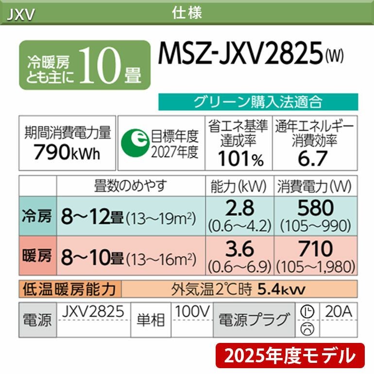 他の画像を見る MSZ-JXV2825-W 三菱電機 JXVシリーズ エアコン 主に10畳用 保湿効果もあるピュアミストで菌・ウイルス・カビ菌・花粉を抑制し、お部屋の空気を清潔に。主に10畳用。 三菱 霧ヶ峰 代引不可 単相100V 日本製 2025年モデル ¥ 132,000 税込 在庫切れ 詳細を見る お気に入りに登録する