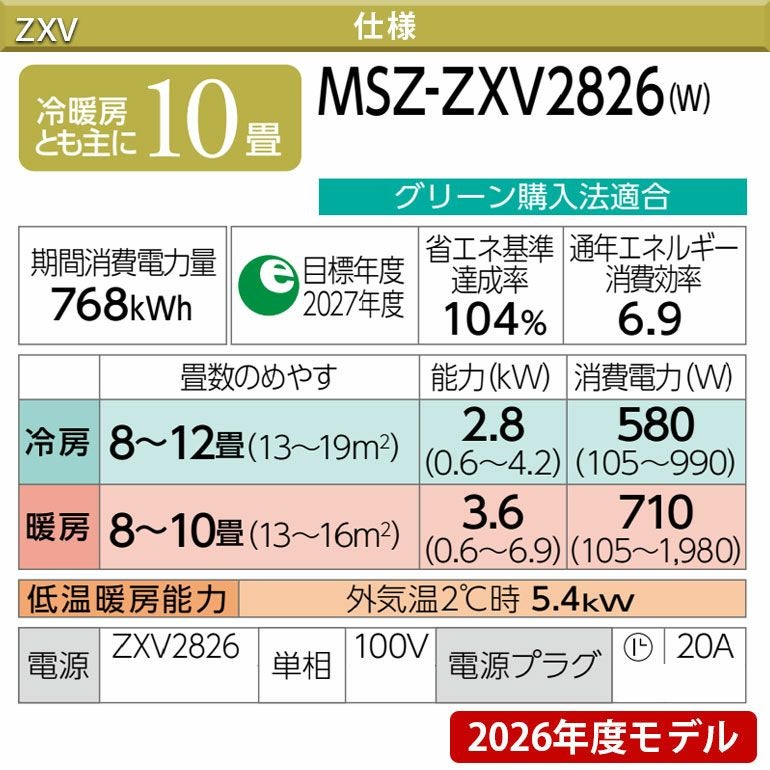 他の画像を見る MSZ-ZXV2826-W 三菱電機 Zシリーズ エアコン 主に10畳用 高精度赤外線センサームーブアイmirA.I.+やバイタルセンサーエモコアイ搭載。主に10畳用。 三菱 霧ヶ峰 代引不可 単相100V 日本製 2026年モデル ¥ 188,120 税込 詳細を見る お気に入りに登録する