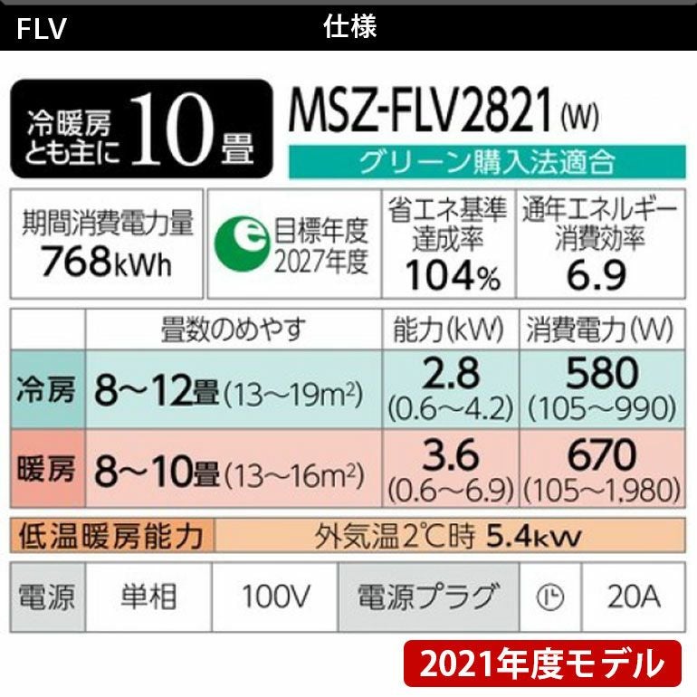 他の画像を見る MSZ-FLV2821-W 三菱電機 FLシリーズ エアコン 主に10畳用 花粉・ウイルス・ニオイ対策に優れた空清フィルター搭載。主に10畳用。 三菱 霧ヶ峰 代引不可 単相100V 日本製 2021年モデル ¥ 150,000 税込 詳細を見る お気に入りに登録する