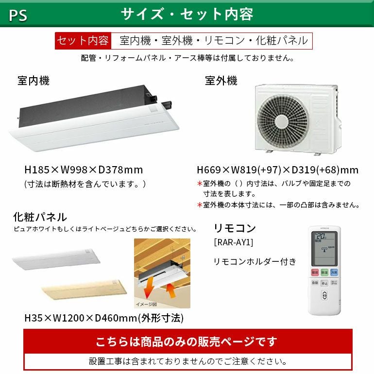 他の画像を見る RAP-S25SD 日立 PSシリーズ ハウジングエアコン 主に8畳用 一方向天井カセットタイプ。凍結洗浄・ステンレスフィルター自動お掃除機能搭載。。主に8畳用。 日立 白くまくん 代引不可 単相200V フィルター自動洗浄 2025年モデル ¥ 186,380 税込 詳細を見る お気に入りに登録する