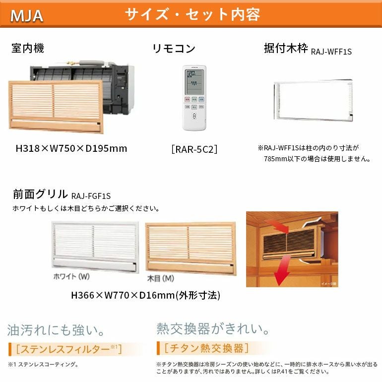 他の画像を見る RAJ-A25SD 日立 JAシリーズ ハウジングエアコン 主に8畳用 お部屋に馴染む壁埋め込みタイプ。4寸角柱の半間幅にも収まるコンパクト設計。主に8畳用。 日立 白くまくん 代引不可 単相200V 2025年モデル ¥ 155,110 税込 詳細を見る お気に入りに登録する