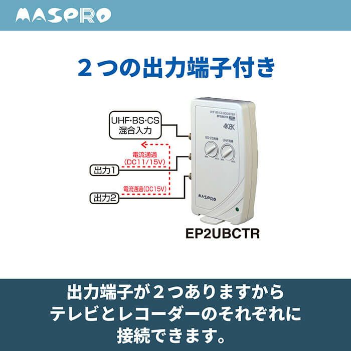 他の画像を見る レコーダー増設時、テレビがきれいに映らないときに使用するブースター。 EP2UBCTR マスプロ 4K・8K放送(3224MHz)対応 UHF・BS・CSテレビ・レコーダーブースター ¥ 7,300 税込 カートに入れる お気に入りに登録する