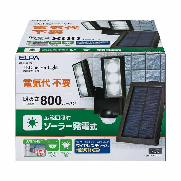 ESL-312SL エルパ LED防雨センサーライト ソーラー発電式