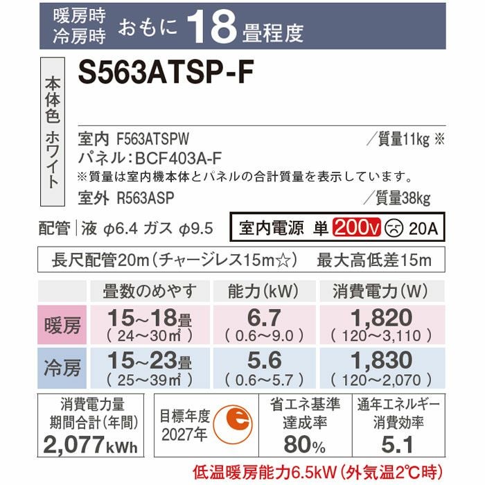 他の画像を見る ダイキン工業 S563ATSP-F●エリア限定●標準工事費用込みエアコン。工事保証3年付。 【標準工事費込み】S563ATSP-F ダイキン ルームエアコン SXシリーズ 主に18畳用 標準工事費込み 代引不可 単相200V 2023年モデル ¥ 195,840 税込 詳細を見る お気に入りに登録する