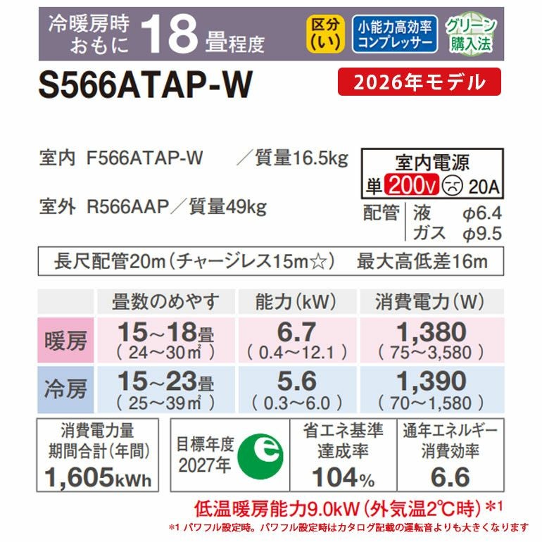 他の画像を見る エリア限定●標準工事費用込みエアコン●工事保証3年付●さらら除湿、快適気流など便利機能が充実のハイグレードモデル 【標準工事費込み】 S566ATAP-W ダイキン ルームエアコン AXシリーズ 主に18畳用 ダイキン AXシリーズ 標準工事費込み 代引不可 単相200V 2026年モデル ¥ 245,520 税込 詳細を見る お気に入りに登録する