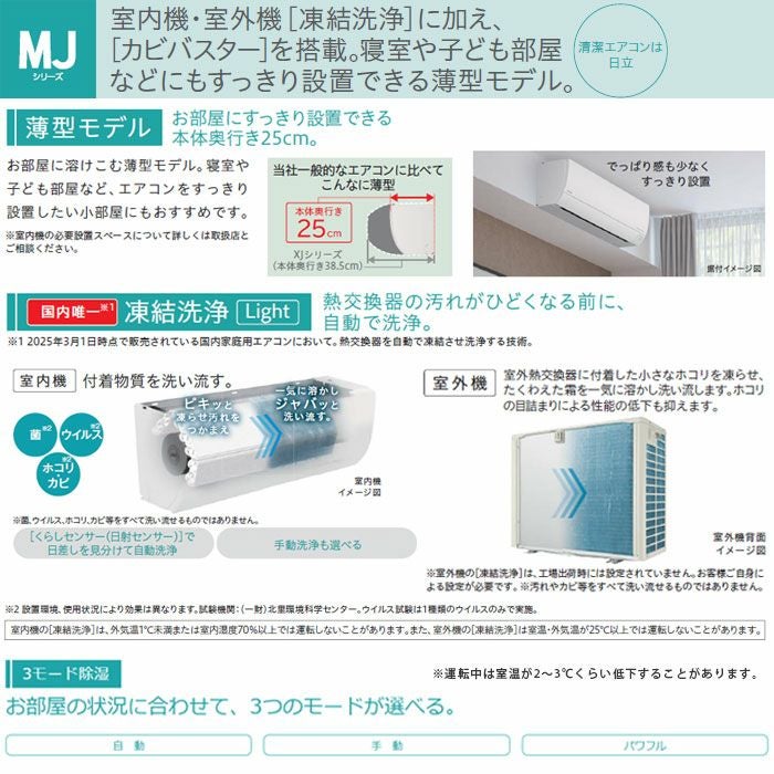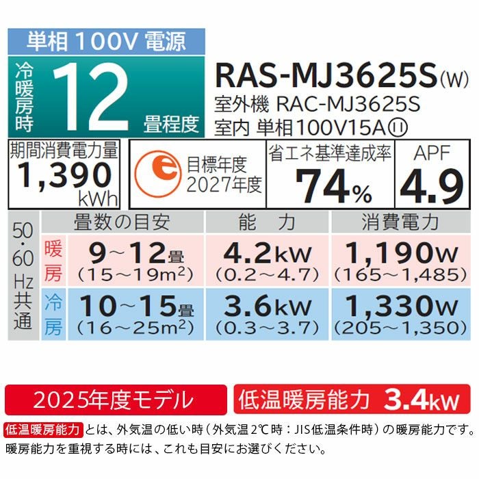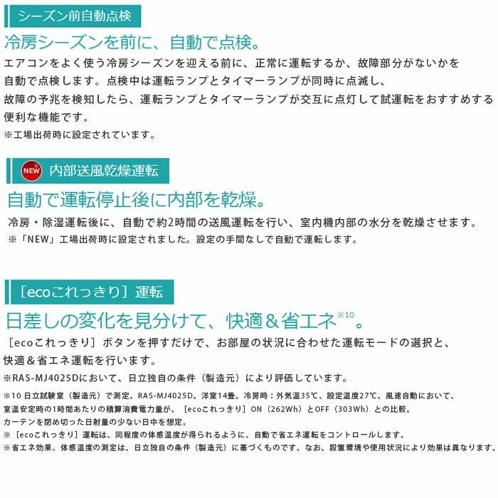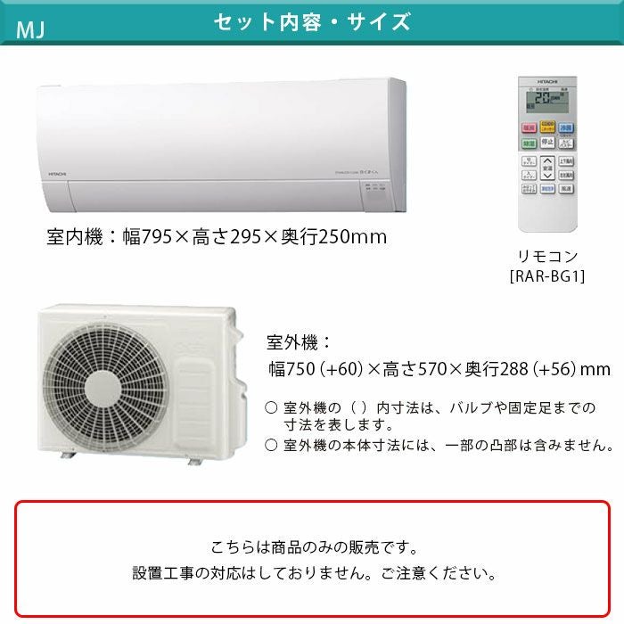 他の画像を見る 本体奥行き25㎝の薄型で寝室や子ども部屋などにもすっきり設置できる薄型モデル RAS-MJ3625S-W 日立 MJシリーズ 白くまくん ルームエアコン 2025年モデル 主に12畳用 日立 白くまくん 代引不可 単相100V フィルター自動洗浄 2025年モデル ¥ 95,980 税込 詳細を見る お気に入りに登録する