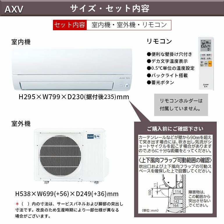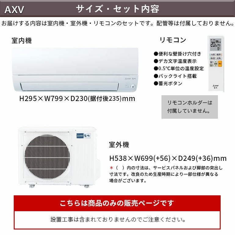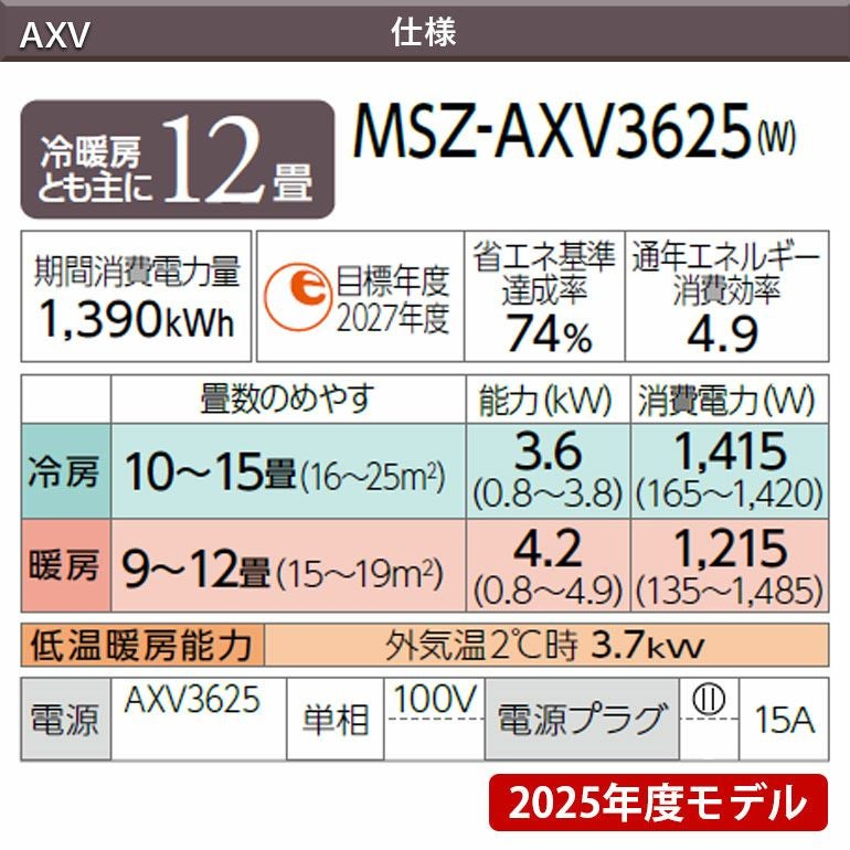 他の画像を見る 標準工事費込。「消し忘れオートOFF」で、うっかり消し忘れても自動で電源を落として節約にも貢献。主に12畳用。 【標準工事費込み】MSZ-AXV3625-W 三菱電機 AXVシリーズ エアコン 主に12畳用 三菱 霧ヶ峰 標準工事費込み 代引不可 単相100V 日本製 2025年モデル ¥ 118,710 税込 詳細を見る お気に入りに登録する