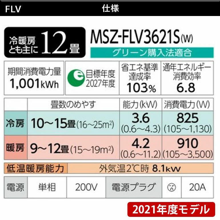 他の画像を見る 標準工事費込。花粉・ウイルス・ニオイ対策に優れた空清フィルター搭載。主に12畳用。 【標準工事費込み】MSZ-FLV3621S-W 三菱電機 FLシリーズ エアコン 主に12畳用 三菱 霧ヶ峰 標準工事費込み 代引不可 単相200V 日本製 2021年モデル ¥ 184,140 税込 詳細を見る お気に入りに登録する