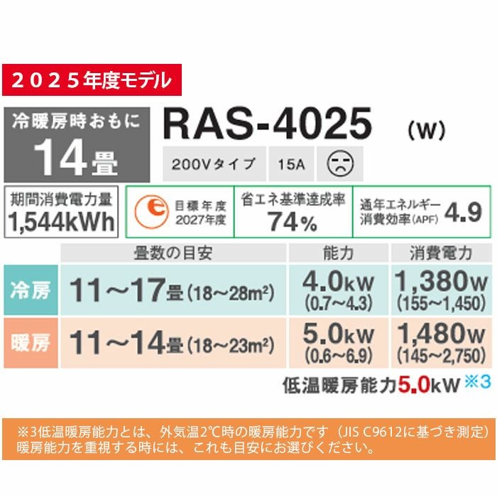 他の画像を見る [LAB制御][凍結洗浄 除菌ヒートプラス][ファンお掃除ロボ][Premiumプラズマ空清][凍結脱臭クリーナー]搭載プレミアムモデル。主に14畳用 RAS-XJ4026D-W 日立 ルームエアコン 白くまくん XJシリーズ 主に14畳用 日立 白くまくん 代引不可 単相200V 日本製 2026年モデル ¥ 177,000 税込 詳細を見る お気に入りに登録する