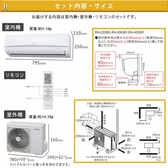 他の画像を見る 標準工事費込●14畳用エアコン●室内機奥行約23cm高さ25㎝と薄型スリム設計●いたわりエコモード搭載 【標準工事費込み】IRA-4006R アイリスオーヤマ ルームエアコン Rシリーズ 主に14畳用 アイリスオーヤマ 標準工事費込み 代引不可 単相100V 2025年モデル ¥ 99,780 税込 詳細を見る お気に入りに登録する