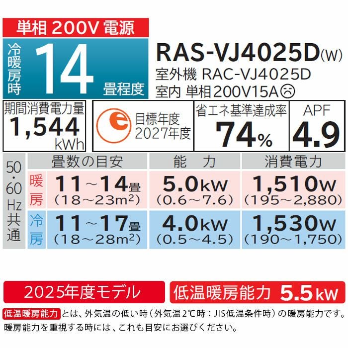 他の画像を見る 標準工事費込み。凍結洗浄・ファンお掃除ロボ・カビバスター搭載のスタンダードモデル。2025年モデルから内部送風乾燥運転搭載。 【標準工事費込み】RAS-VJ4025D-W 日立 ルームエアコン 白くまくん VJシリーズ 主に14畳用 2025年モデル 日立 白くまくん 標準工事費込み 代引不可 高さ250mm以下 単相200V 2025年モデル ¥ 128,100 税込 詳細を見る お気に入りに登録する