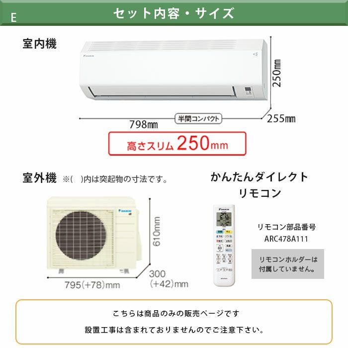 他の画像を見る 室内機の高さ250mm×奥行き255mmのコンパクトサイズ。主に14畳用。 S405ATEP-W ダイキン Eシリーズ エアコン 2025年モデル 主に14畳用 ダイキン Eシリーズ 代引不可 高さ250mm以下 単相200V 2025年モデル ¥ 98,990 税込 詳細を見る お気に入りに登録する