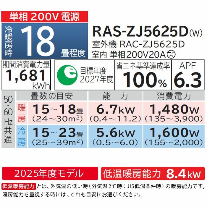 他の画像を見る 標準工事費込み。凍結洗浄・ファンお掃除ロボ・カビバスター搭載のハイグレードモデル。2025年モデルから内部送風乾燥運転搭載。 【標準工事費込み】RAS-ZJ5625D-W 日立 ルームエアコン 白くまくん ZJシリーズ 主に18畳用 2025年モデル 日立 白くまくん 標準工事費込み 代引不可 単相200V 日本製 2025年モデル ¥ 210,870 税込 詳細を見る お気に入りに登録する