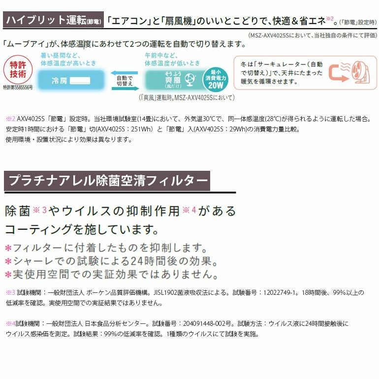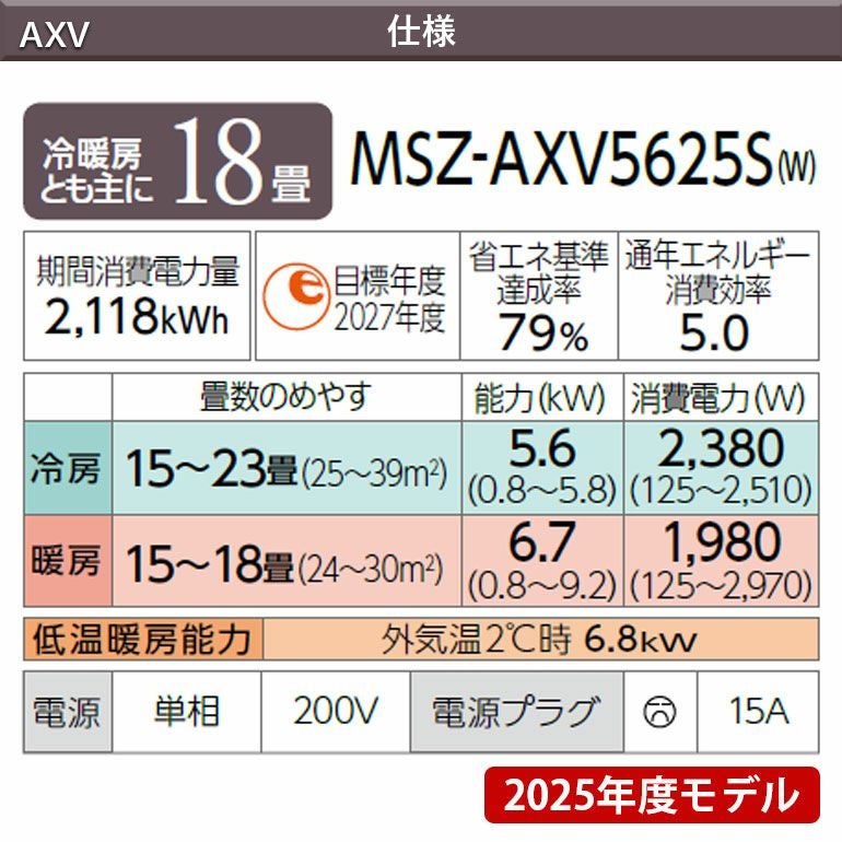 他の画像を見る 赤外線センサー「ムーブアイ」が冷やしすぎない、あたためすぎない快適な空調を実現。主に18畳用。 MSZ-AXV5625S-W 三菱電機 AXVシリーズ エアコン 主に18畳用 三菱 霧ヶ峰 代引不可 単相200V 日本製 2025年モデル ¥ 130,100 税込 詳細を見る お気に入りに登録する
