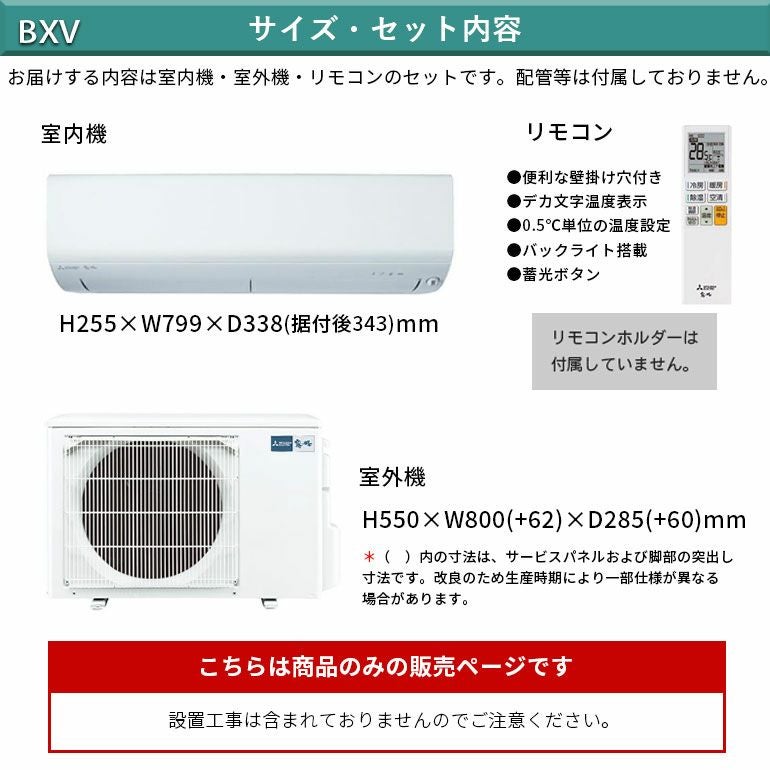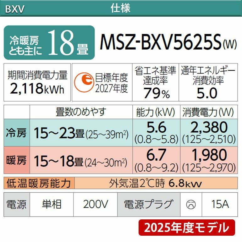 他の画像を見る 標準工事費込。室内機の高さ255mmでコンパクト。内部クリーンでカビ抑制。主に18畳用。 【標準工事費込み】MSZ-BXV5625S-W 三菱電機 BXVシリーズ エアコン 主に18畳用 三菱 霧ヶ峰 標準工事費込み 代引不可 単相200V 日本製 2025年モデル ¥ 178,020 税込 詳細を見る お気に入りに登録する