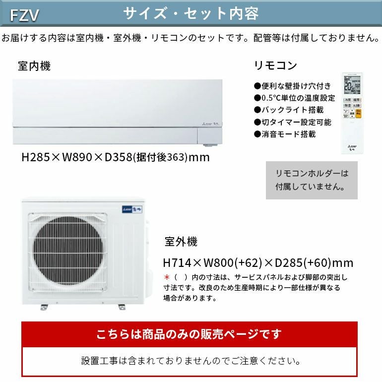 他の画像を見る 標準工事費込。霧ヶ峰FZシリーズは8年連続省エネNo.1(2019~2026年度)。 主に18畳用。 【標準工事費込み】MSZ-FZV5626S-W 三菱電機 FZシリーズ エアコン 主に18畳用 三菱 霧ヶ峰 標準工事費込み 代引不可 単相200V 日本製 2026年モデル ¥ 283,120 税込 詳細を見る お気に入りに登録する