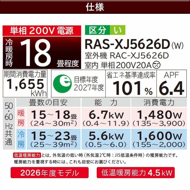 他の画像を見る [LAB制御][凍結洗浄 除菌ヒートプラス][ファンお掃除ロボ][Premiumプラズマ空清][凍結脱臭クリーナー]搭載プレミアムモデル。主に18畳用 RAS-XJ5626D-W 日立 ルームエアコン 白くまくん XJシリーズ 主に18畳用 日立 白くまくん 代引不可 単相200V 日本製 2026年モデル ¥ 199,500 税込 詳細を見る お気に入りに登録する
