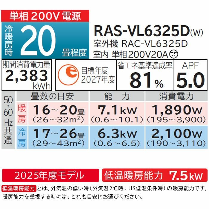 他の画像を見る 標準工事費込み。凍結洗浄・ファンお掃除ロボ・カビバスター搭載のスタンダードモデル。2025年モデルから内部送風乾燥運転搭載。 【標準工事費込み】RAS-VL6325D-W 日立 ルームエアコン 白くまくん VLシリーズ 主に20畳用 2025年モデル 日立 白くまくん 標準工事費込み 代引不可 単相200V 2025年モデル ¥ 160,190 税込 詳細を見る お気に入りに登録する