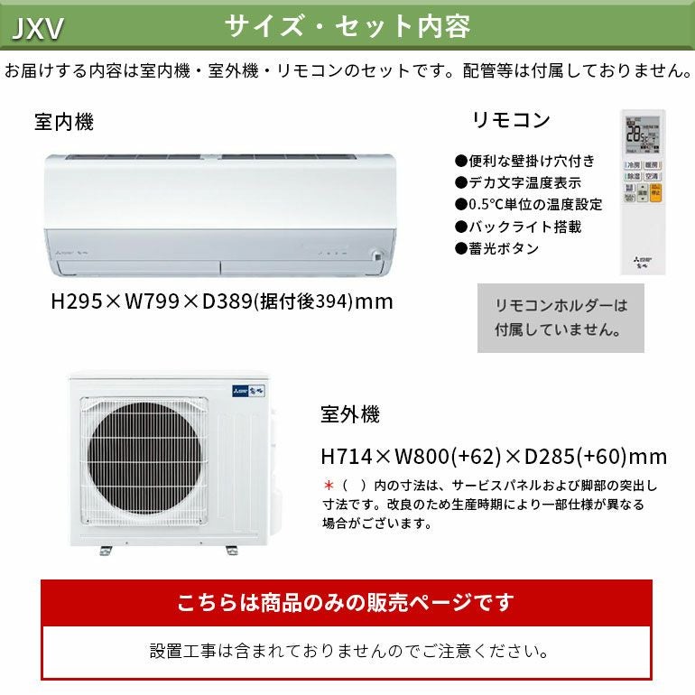他の画像を見る 保湿効果もあるピュアミストで菌・ウイルス・カビ菌・花粉を抑制し、お部屋の空気を清潔に。主に20畳用。 MSZ-JXV6325S-W 三菱電機 JXVシリーズ エアコン 主に20畳用 三菱 霧ヶ峰 代引不可 単相200V 日本製 2025年モデル ¥ 195,400 税込 詳細を見る お気に入りに登録する