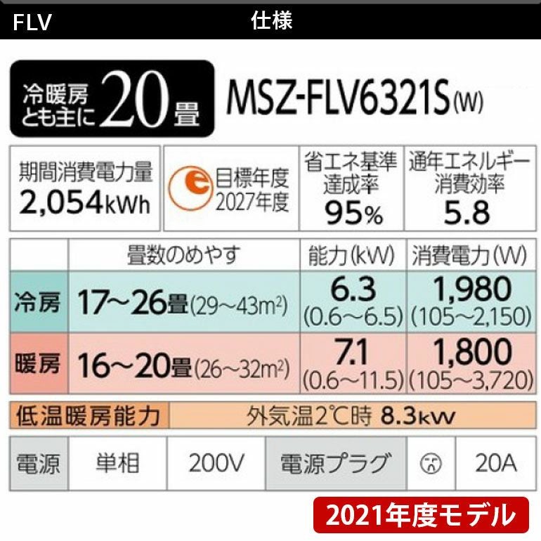 他の画像を見る 標準工事費込。花粉・ウイルス・ニオイ対策に優れた空清フィルター搭載。主に20畳用。 【標準工事費込み】MSZ-FLV6321S-W 三菱電機 FLシリーズ エアコン 主に20畳用 三菱 霧ヶ峰 標準工事費込み 代引不可 単相200V 日本製 2021年モデル ¥ 233,260 税込 詳細を見る お気に入りに登録する