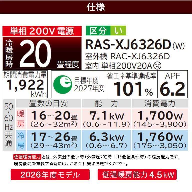 他の画像を見る エリア限定●標準工事費込み●[LAB制御][凍結洗浄 除菌ヒートプラス][ファンお掃除ロボ][Premiumプラズマ空清][凍結脱臭クリーナー]搭載プレミアムモデル。主に20畳用 【標準工事費込み】RAS-XJ6326D-W 日立 ルームエアコン 白くまくん XJシリーズ 主に20畳用 日立 白くまくん 標準工事費込み 代引不可 単相200V 日本製 2026年モデル ¥ 222,360 税込 詳細を見る お気に入りに登録する